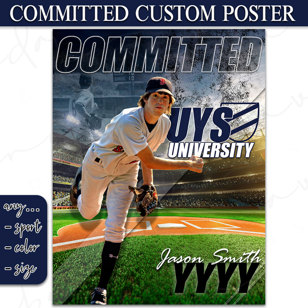 You can send me the school's name, their logo, player's name, the colors that you want on there and any other details you want on your committed poster.