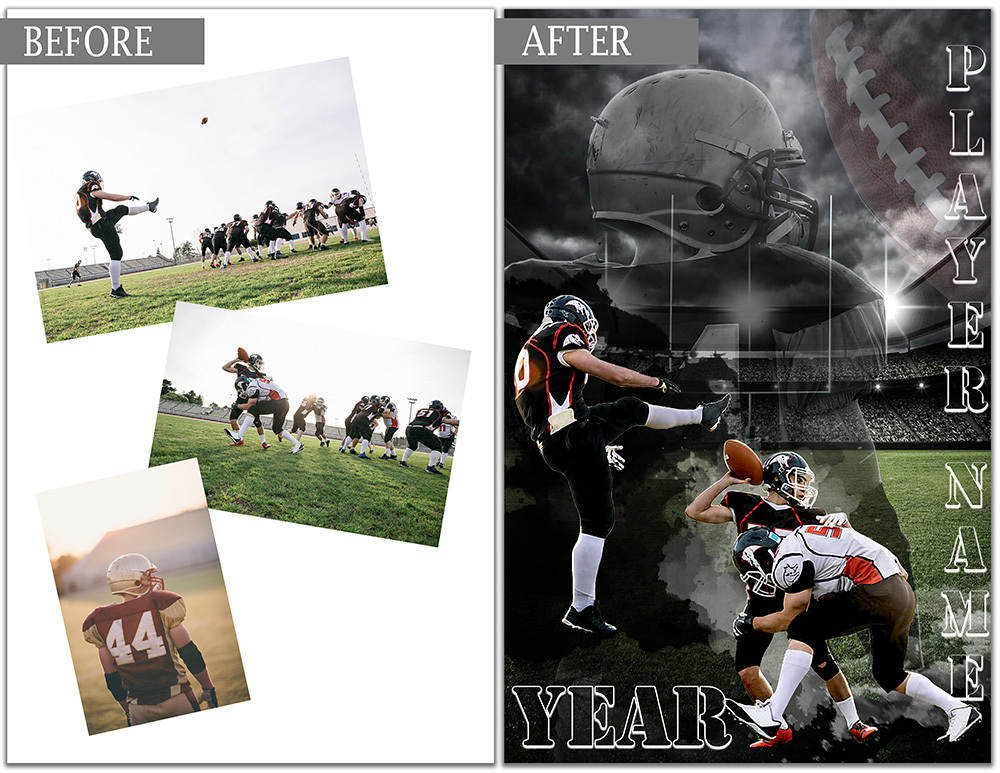 A digital file of a custom sports design with your photos in JPG or PNG format. You will be able to print this in the size you specified.